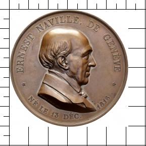 ERNEST NAVILLE, DE GENÈVE // NÉ LE 13 DÉC. - 1816. Büste des Ernest Navilles nach rechts. Im Schulterabschnitt die Signatur HUGUES BOVY SC. 1890.