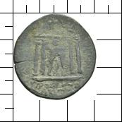 ΑΠΟ[ΛΛΩΝIA]TΩN // ΠPOC PVNΔ-/AKOY. Viersäuliger Tempel in der Vorderansicht. Darin steht Apollon an einer Säule aufgestützt nach r. In seiner erhobenen r. Hand hält er einen Gegenstand (Pfeil?).