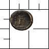 AMAΞ[I]. Apollon Smintheus in langem Gewand steht nach r. In seiner l. Hand hält er Pfeil und Bogen, in der r. eine Schale (phiale). Auf dem Rücken ein Köcher. Im r. F. ein Monogramm.