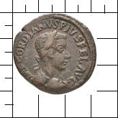 IMP GORDIANVS PIVS FEL AVG. Drapierte Panzerbüste des Gordianus III. mit Lorbeerkranz in der Rückenansicht nach r.