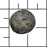 Kopf mit Spirallocken und Perlenhalsband nach r. Im Feld flächig kleine Punkte. Um das Ganze ein Seilkranz. |