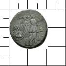 AMI-Σ[OY]. Nike nach r. Über ihrer l. Schulter trägt sie einen langen Palmzweig, welchen sie mit beiden Händen festhält. Im l. F. und r. F. je ein Monogramm. |