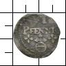 [V]I / PFENNIG. Unter der Aufschrift in zwei Zeilen ein Reichsapfel zwischen zwei Blattkreuzen. |