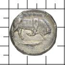 ΘΟΥΡΙΩΝ. Stier stoßend mit gesenktem Kopf, erhobenem Vorderbein nach r. Im Abschnitt ein Fisch nach r. |