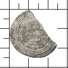 [Bism]illāh ḍuriba hāḏā ad-dirham bi-l-Baṣra fī sanat [...wa-ṯamanīn] -/ Lā ilāh ʾillā / Allāh waḥdahū / lā šarīk lahū [Im Namen Gottes, dieser Dirham wurde geschlagen in al-Baṣra im Jahr ... und achtzig Es gibt keinen Gott außer Gott, er ist einzig, er hat keinen Begleiter]. Umlaufend Nennung von Nominal, Münzstätte und Prägejahr. Im Feld das Glaubensbekenntnis. Als Randzier 5x o drei gezackten Kreisen, außen ein weiterer Zackenkreis. |