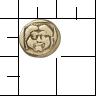 Medusenkopf (gorgoneion) in der Vorderansicht. Das Ganze in einem vertieften rechteckigen Rahmen.