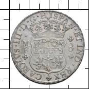 CAROLVS III D G HISPAN ET IND REX. Bekrönter Wappenschild. Wertangabe 8 im r. F., Initialen MF im l. F. |