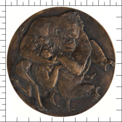 Auflage 20 Stück. - Reagiert der übermächtige Gorilla oder ergreift er von sich aus die Initiative? Die vieldeutbare Darstellung von Macht wird auf der Rückseite durch den unmissverständlichen Aphorismus kontextualisiert. Die Medaille inszeniert – so eine mögliche Lesart – im Zusammenspiel von klarem Wort und machtstaatlicher Allegorie das inner- und zwischenstaatlich ambivalente Verhältnis von Macht, Recht und Gerechtigkeit. Sie positioniert sich gegen ein Recht des Stärkeren und legt mit ihrer Zuspitzung auf die stärksten Formen des Unrechts die Gegenposition zum Macht- und Unrechtsstaat, nämlich den demokratischen Rechtsstaat, nahe. Hier wird das Recht nicht autokratisch oder von sozial Mächtigen festgelegt, sondern entsteht in demokratischen Verfahren, wird rechtsstattlich begrenzt und dient der Verwirklichung grundrechtlich geschützter Freiheit.