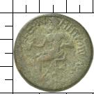 [ΔHMOC TA]PCEΩN - MHTPOΠOΛEΩC [C eckig]. Die Personifikation des Demos im Hüftmantel sitzt nach l. In seiner ausgestreckten r. Hand hält er einen Kranz, ein Teil des Hüftmantels liegt über dem angewinkelten l. Arm.