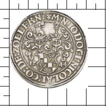 Schrötlingsriss. - Die Kleinmünzen (Kreuzer und Batzen) für Jobst Nikolaus II. prägte der Münzmeister Ludwig Boßweil in Hechingen. Nach Beschwerde der Städte Ulm und Augsburg wegen der Geringhaltigkeit der Prägungen stellte Jobst Nikolaus die Prägung von Kleinmünzen ein und ließ seinen Münzmeister für 2 Jahre und 11 Wochen in Ketten legen. Die Talerprägung dürfte wohl durch den Donauwörther Münzmeister und Stempelschneiders Balthasar Hundertpfund nach Einschmelzung der Kleinmünzen erfolgt sein.