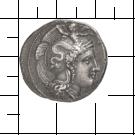 Kopf der Athena mit attischem Helm nach r., auf dem Helmkessel Skylla nach r., die mit der r. Hand einen Stein wirft. Im r. F. die Buchstaben Δ [Κ Φ]. |