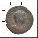 P M [S COL] VIM // AN XII [Jahr 12 = 250-251 n. Chr.]. Weibliche Gestalt (Moesia) steht in der Vorderansicht, Kopf nach l. In r. Hand hält sie einen Zweig, in ihrer l. Hand ein Füllhorn (cornucopiae). Die weibliche Gestalt (Moesia) wird von einem Stier l. und einem Löwen r. flankiert.