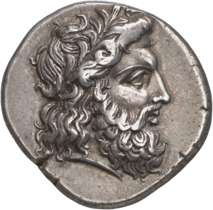 Vorderseite: Kopf des Zeus Olympios mit Lorbeerkranz nach r.