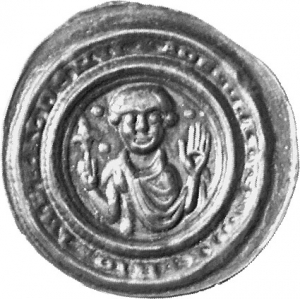 Obverse: + ADELBERTVS + MARCHIO + ANEHALDENSI [Adelbertus Marchio Anehaldensis]. Hüftbild des Markgrafen mit Lilienzepter und erhobener Linken.