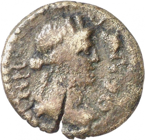 Schrötlingsriss. - Aufgrund der Büstenform scheint eine Datierung in trajanische oder hadrianische Zeit möglich. Das Rückseitenbild greift die Darstellung der Göttin/Stadtpersonifikation von Mostene mit ihren spezifischen Attributen wieder auf.