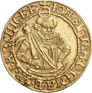 Vorderseite: IOH SIGISM D G MA B S R I ARCHIC E E. Brustbild Johann Sigismund im Harnisch von vorn mit geschultertem Kurzepter, die Linke am Schwertgriff. Über dem Kopf Reichsapfel.