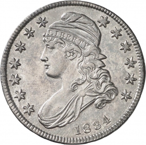 Vorderseite: Büste der Liberty (Freiheit) mit der phrygischen Mütze, darauf LIBERTY, nach links zwischen 13 Sternen. Unten 1834.