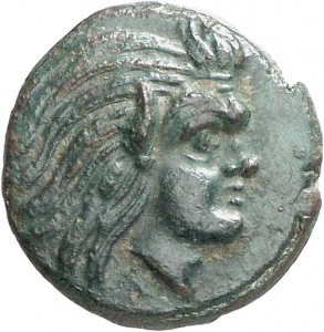 Obverse: Kopf des bartlosen Pan nach r.