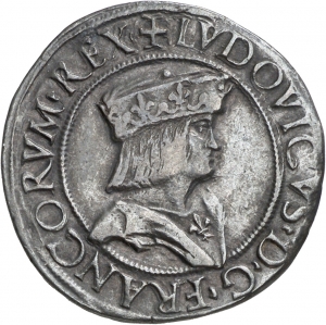 Vorderseite: + LVDOVICVS D G FRANCORVM REX [Ludovicus Dei Gratia Francorum Rex]. Brustbild Ludwig XII. mit lilienverziertem Barett nach rechts.