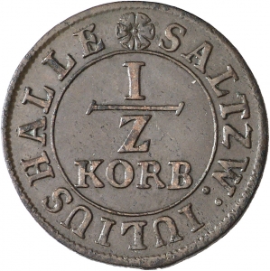 Vorderseite: SALTZW IULIUSHALLE. Wert I/2 / KORB. Umschrift.