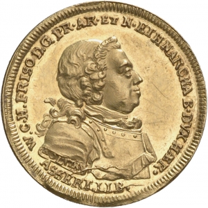 Medaille im Dukatengewicht. - Wilhelm IV. war der Sohn des friesischen Statthalters Johann Wilhelm Friso von Nassau-Diez (1687-1711), der bei einer Bootsfahrt noch vor der Geburt des Sohnes ertrank. Wilhelm IV. war sein Erbe in Friesland und in Nassau-Diez. 1734 heiratete er Anna von England, die Tochter von Georg II. von Großbritannien, 1747 übernahm er das Amt des niederländischen Erbstatthalters. Die Prägung ist dem (zweiten) Aachener Frieden gewidmet. Dieser beendete den Österreichischen Erbfolgekrieg zwischen Frankreich und Preußen und Österreich und Großbritannien.