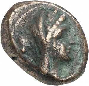 Vorderseite: Verschleierter Kopf einer Frau (Thetis?) mit Kranz nach r.