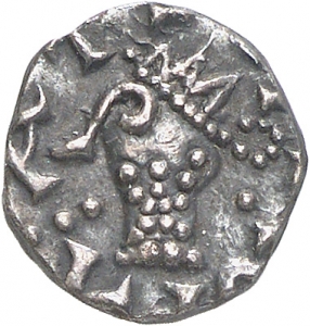 Literatur: M. Prou - E. Bougenot, Catalogue des Deniers Mérovingiens de la Trouvaille de Bais (Ille-et-Vilaine) ²(Original 1908 Neubearbeitung durch J. Lafaurie 1981) 64 Nr. 160; G. Depeyrot, Le numéraire Mérovingien l'Age du denier (2001) 109 Nr. 25 (datiert ca. 700-740). - Monetarname Iludramnom/Ilodramnom nicht bei E. Felder, Die Personennamen auf den merowingischen Münzen der Bibliothèque nationale de France (2003).
