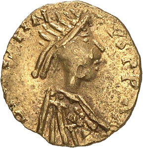 Literatur: Vgl. W. Reinhart, Die früheste Münzprägung im Reiche der Merowinger, DJbN 2, 1939, 37 ff. 55 Nr. 20 Taf. 3 (für die Flügelgestaltung auf der Rs.).