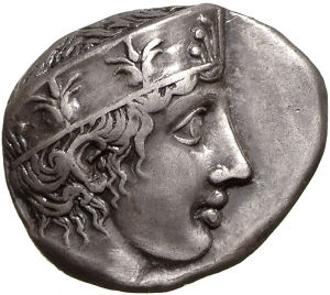 Vorderseite: Kopf der Hera mit palmettendekorierter Stephane nach r.