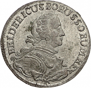 Literatur: F. Freiherr von Schrötter, Das preußische Münzwesen im 18. Jahrhundert, II. Die Münzen aus der Zeit des Königs Friedrich II. des Großen (1904) Nr. 284-285; M. Olding, Die Münzen Friedrichs des Großen (2006) Nr. 57; Die Münzen Friedrichs II. (2012) Nr. 94.2/269 (dieses Stück).