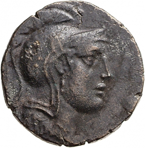 Obverse: Kopf der Athena mit attischem Helm nach r.