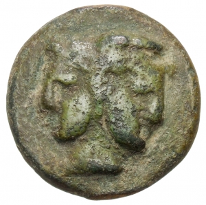 Vorderseite: Unbärtiger Doppelkopf mit Kappe (petasos).