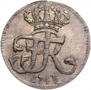 Obverse: Gekrönte verschlungene Initialen FR, darunter Jahreszahl 1745.