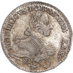 Publications: M. Olding, Die Münzen Friedrichs des Großen (2006) Nr. 184 a; Die Münzen Friedrichs II. (2012) Nr. 213.3/2026. Vgl. F. Freiherr von Schrötter, Das preußische Münzwesen im 18. Jahrhundert, II. Die Münzen aus der Zeit des Königs Friedrich II. des Großen (1904) Nr. 942-944 (Vs. wie Nr. 942, Rs. wie Nr. 944).