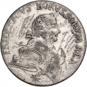 Literatur: M. Olding, Die Münzen Friedrichs des Großen (2006) Nr. 185 a-b; Die Münzen Friedrichs II. (2012) Nr. 214.1/2039. Vgl. F. Freiherr von Schrötter, Das preußische Münzwesen im 18. Jahrhundert, II. Die Münzen aus der Zeit des Königs Friedrich II. des Großen (1904) Nr. 962 c (dort auf Rs. PRUSS).