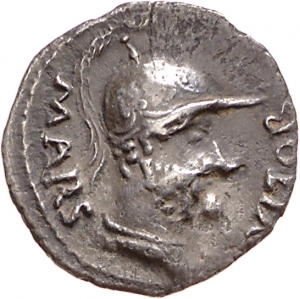 Vorderseite: MARS - VLTOR. Drapierte Büste des bärtigen Mars mit Helm nach r.