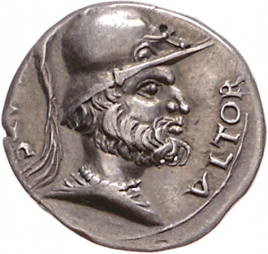 Obverse: [MAR]S - VLTOR. Drapierte Büste des bärtigen Mars mit Helm nach r.