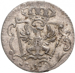 Obverse: Der preußische Adler mit Schwert und Zepter in einem gekrönten Barockschild, auf der Brust gekrönte Initiale FR.