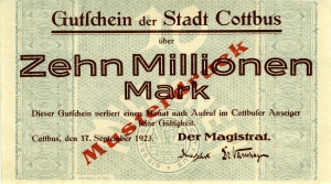 Cottbus, Stadt: 10 Millionen Mark 1923 Probe