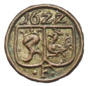 Obverse: Zwei Schilde nebeneinander mit Helm und Hahn. Darüber 16ZZ, unten F zwischen zwei Punkten.