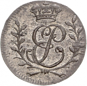 Publications: F. Freiherr von Schrötter, Das preußische Münzwesen im 18. Jahrhundert, II. Die Münzen aus der Zeit des Königs Friedrich II. des Großen (1904) Nr. 1949 e (auf jeder Seite sieben Blätter); M. Olding, Die Münzen Friedrichs des Großen (2006) Nr. 460; Die Münzen Friedrichs II. (2012) Nr. K 34.1/3853.