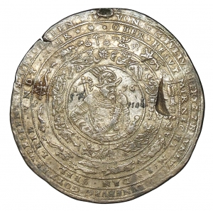 Vorderseite: VON G G IVLIVS HERTZ Z BRVNSWIG V LVNEBVRG GOTTES VERSEHN MVS GESCHEHEN / O HER BEHVT MIR NICHT MER DAN SEEL LEIB VNDT EHR. Büste Herzog Julius im Harnisch nach rechts mit geschulterter Streitaxt, daneben 1-5-76, außen zwei Kreise mit der Umschrift, ein dritter mit den Sternkreiszeichen und der innere mit den personifizierten Planeten.