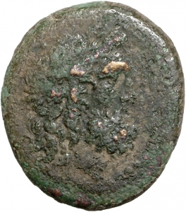 Rückseite: Π-[ΕΡ]/Γ-Α//ΜΗΝΩ[Ν]. Adler sitzt mit ausgebreiteten Flügeln frontal auf Blitzbündel und wendet den Kopf nach r.