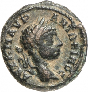 Obverse: AVΤ Κ Μ ΑVP - ΑΝΤΩΝΕΙΝΟC. Kopf des Elagabalus mit Lorbeerkranz nach r.
