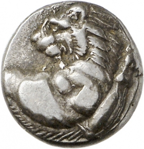 Obverse: Löwenprotome nach r. mit zurückgewandtem Kopf.