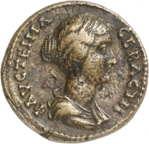 Vorderseite: ΦAVCTEINA - CEBACTH [N retrograd]. Drapierte Büste der Faustina minor in der Brustansicht nach r.