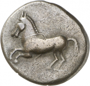 Obverse: Springendes Pferd mit losen Zügeln nach l.