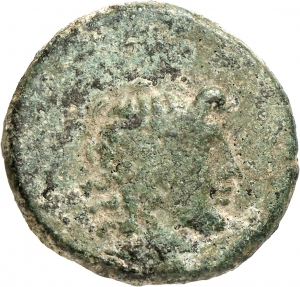 Obverse: Jugendlicher Kopf (Dionysos?) mit wehendem Haar nach r.
