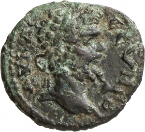 Vorderseite: AV K Λ - CEVHPOC. Kopf des Septimius Severus mit Lorbeerkranz nach r.