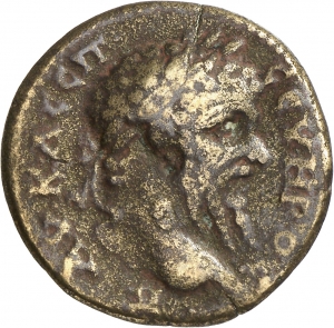 Vorderseite: ΑΥ K Λ CΕΠ - CEVΗΡΟC - Π. Kopf des Septimius Severus mit Lorbeerkranz nach r.